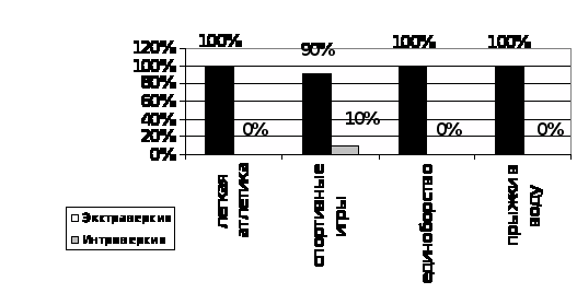 3.1. Экстраинтровертивные различия у людей, занимающихся определенными видами спорта |