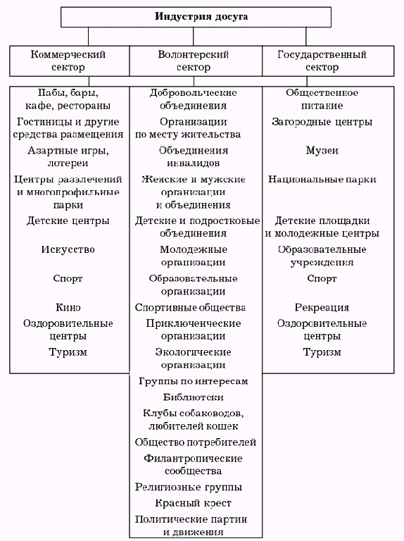 Рис.1.4 Структура индустрии досуга по Дж. Торкилдсену