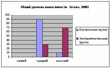 Таблица измерения уровня общей выносливости у экспериментальной группы (осень 2008)