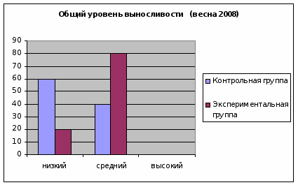 Таблица измерения уровня общей выносливости у контрольной группы (весна 2008)