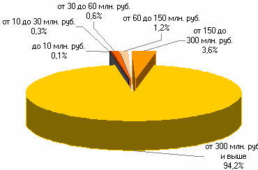 Рис 2.5: Группировка кредитных организация, использующих право на усреднение обязательных резервов в октябре 2009 года, по величине зарегистрированного уставного капитала.