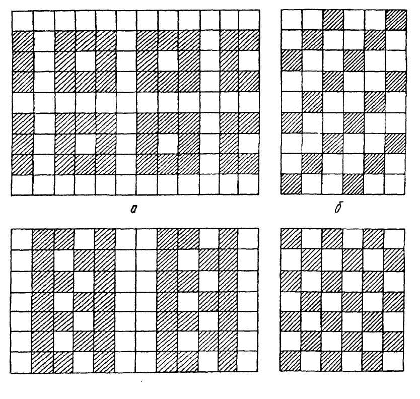 Рис.3.4 Зразки опорядження основного поля підлоги плитками двох кольорів: а - квадратами; б - діагональними рядами; в - доріжками; г - під шахи, 4. Підготовка облицювальних робіт.