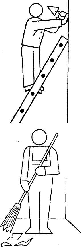 14. На висотних роботах користуються підмостками і драбинами. Забороняється застосовувати замість них випадкові опори.