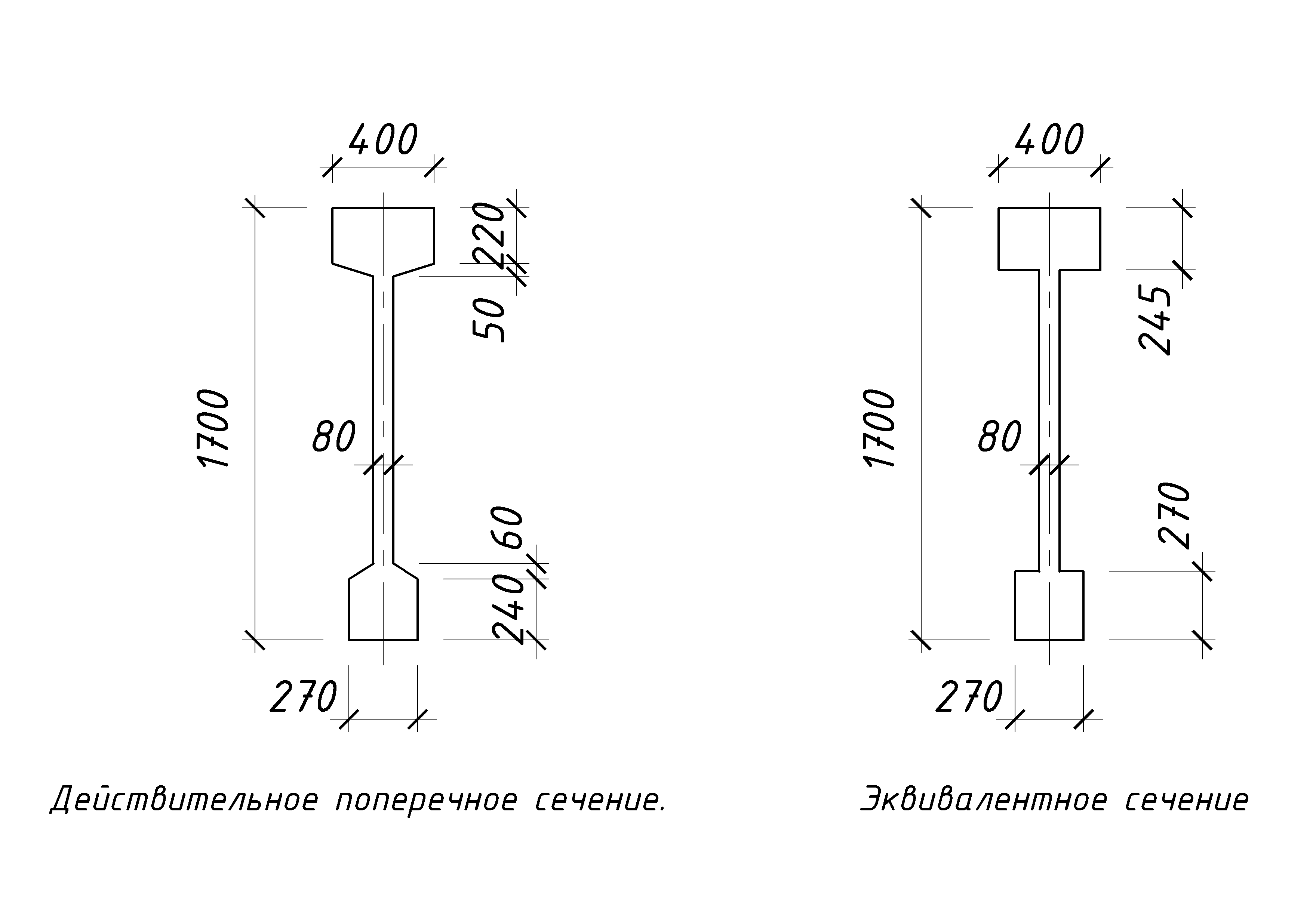 Расчет по образованию трещин выполняется исходя из условно упругой модели сечения по упрощенной методике в соответствии с п.9.8.1.4 СНБ 5.03.01-02.