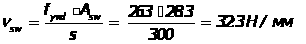 погонное усилие, воспринимаемое хомутами на единицу длины.