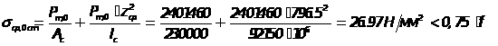 Выгиб балки от усилия предварительного напряжения непревышает приращение прогиба от эксплуатационной нагрузки.Т. е. в стадии эксплуатации балка будет иметь прогиб в середине пролета 3,874 мм не превышающий предельного прогиба.
