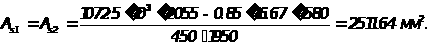 Площадь вертикальной арматуры класса S400 (f>yd> = 365МПа)
