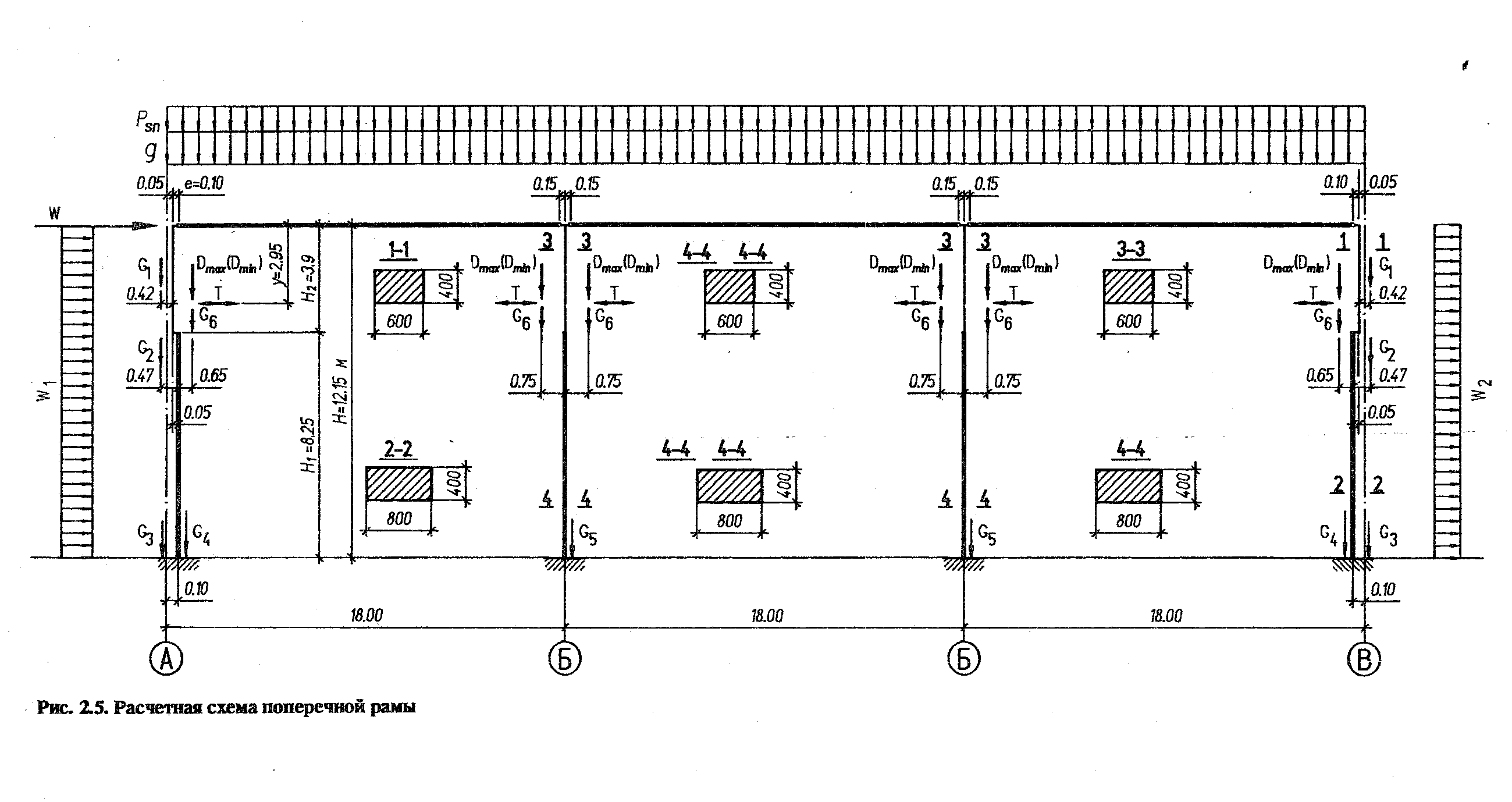 Результаты компоновки поперечной рамы здания представлены на рис. 1.