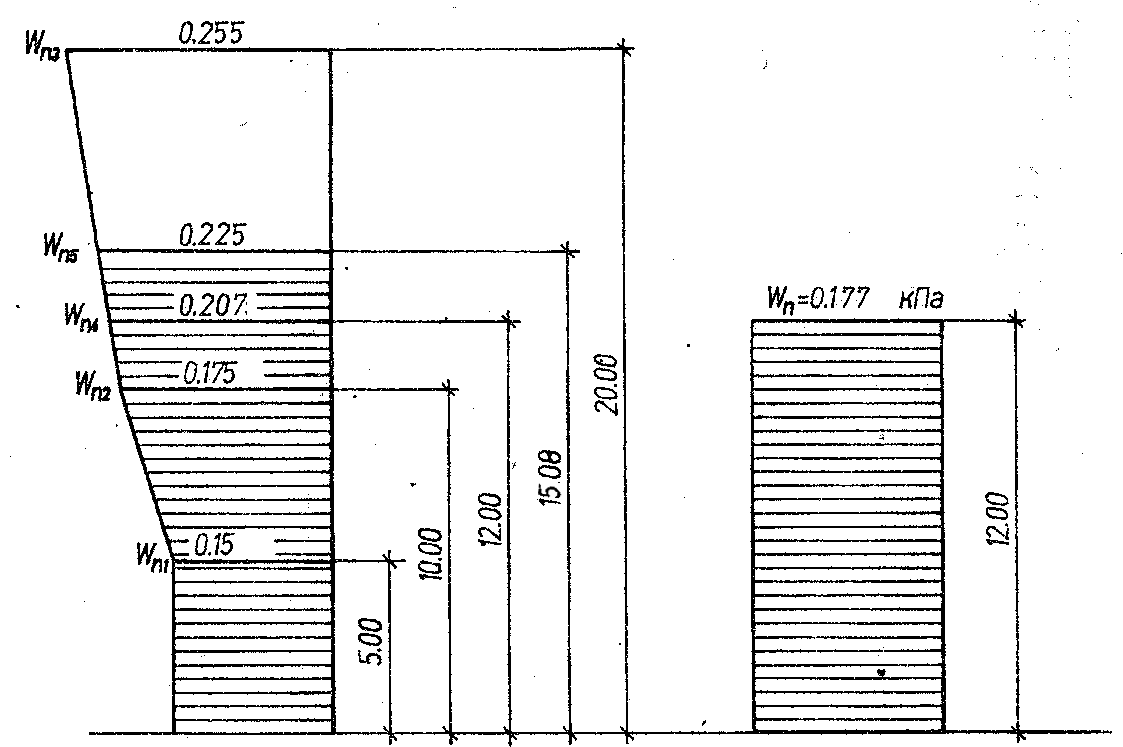 (г. Братск) по [7] определяем нормативное значение снегового покрова s>o> = 1 кПа (район III) и соответственное полное нормативное значение снеговой нагрузки s = s>o>·μ = 1·1 = 1,0 кПа (при определении коэффициента μ не следует учитывать возможность снижения снеговой нагрузки с учетом скорости ветра). Коэффициент надежности для снеговой нагрузки γ>f>> >= 1,4. Тогда расчетная нагрузка от снега на 1 м ригеля рамы с учетом класса ответственности здания соответственно будет равна P>sn> = 1·1,4·6·1= 8,4 кН/м. Длительно действующая часть снеговой нагрузки согласно п. 1.7 [7] составит P>sn>>,>>l> = P>sn>·k= 0,3·8,4 = 2,52 кН/м.
