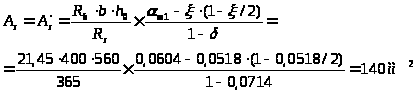 A>s,1-1>= M>l-1>/(R>s>·0,9·h>01>) =23,54·106/(280·0,9·260) = 359,2643 мм2