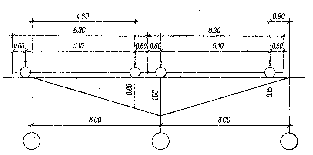Рис. 3 Линия влияния давления на колонну и установка крановой нагрузки в не выгодное положение.
