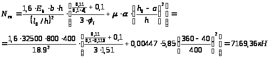R>b>bx(h>0>–0,5х)+R>sc>·A´>s>(h>0>-а')=19,8·800·58,2(360-0,5·58,2) +365·763(360-40)=394,17·106Нмм =394,17 кНм > Ne = 922,6·0,1753 = 161,7 кНм, т. е. прочность надкрановой части колонны в плоскости, перпендикулярной поперечной раме, обеспечена.