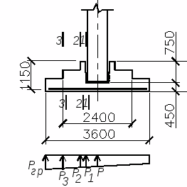 Принимаем двухступенчатую плиту с высотой нижней ступени 0,45 м и верхней – 0,3 м.