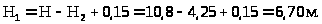 Н>ПЛ>=0,75 м, H>0>=0,75-0,05=0,70 м.