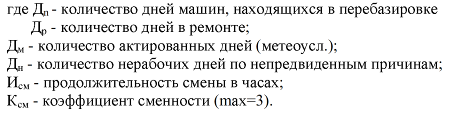 Число часов работы машины на год определяется в соответствии с установленным годовым и сменным режимами ее работы. Годовой режим работы представляет собой распределение общего календарного времени на время работы машин и время, когда она не работает, находясь в техническом обслуживании, ремонте, перебазировке и т.д.