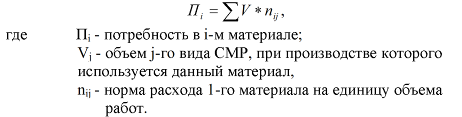 Основой для определения потребности в строительных материалах являются производственные нормы расхода, которые разработаны в разрезе отдельных видов СМР. При отсутствии всей необходимой информация по объектам допускается применение сметных норм.