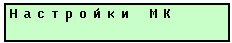 Пункт основного меню "Настройки МК". Вход в подпункты осуществляется по нажатию клавиши "Enter" (за исключением подпункта "Максимальная скорость"). Пункт содержит следующие подпункты:
