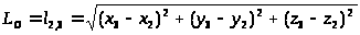 где x,y,z – координаты точек 1 и 2, мм [1].