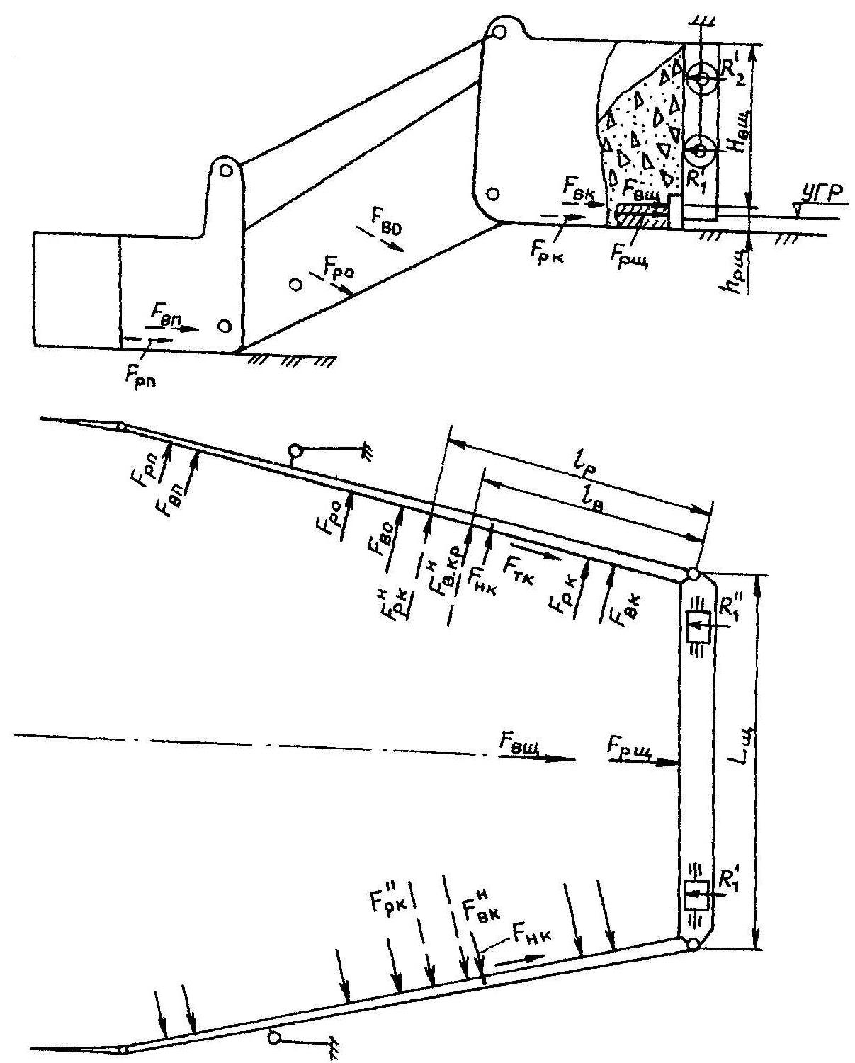 Для расчета усилия в распорке все силы резания балласта от призмы волочения, действующие на части крыла при работе, проектируем на горизонтальную плоскость.