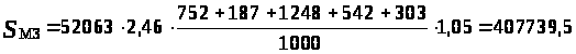 С учетом отчислений от средств на оплату труда 257966,9∙1,39 = 358573,95 руб.;