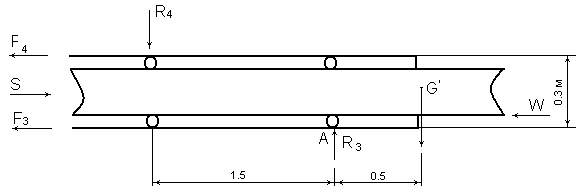Горизонтальне – визначаємо реакції, виникаючих від шарнірів (роликів) в горизонтальній, площині при поперечному ухилі колійної решітки (рисунок 3.4).