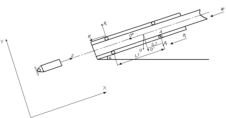 Визначимо зусилля S на штоці гідроциліндра, для цього складемо три рівняння статики (рисунок 3.1).