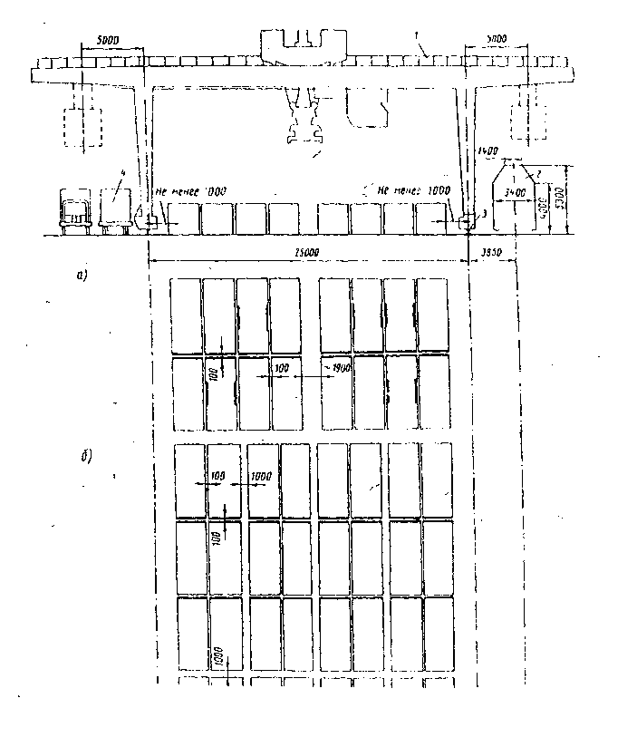 При перегрузке контейнеров на автомобиль, последний необходимо внести в зону действия стрелы, предусмотрев проезды шириной 5,0 м.