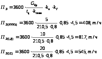 kсовм - коэффициент совмещении операций; для козловых, мостовых и кранов-штабелёров – 0,8, для передвижных стреловых и железнодорожных кранов - 0,7, кв=0,8-0,85 - коэффициент использования машины по времени;