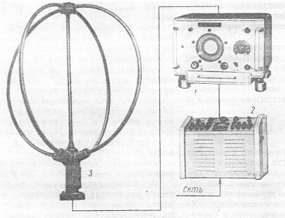 приемоиндикаторный блок 1, блок питания 2, блок рамочных антенн 3 и не указанные на рисунке ненаправленная антенна типа «наклонный луч» и антенный усилитель или антенная коробка, сигнальный щиток. Радиопеленгатор снабжен устройством цифровой индикации частоты настройки, имеет двустороннюю световую сигнализацию между помещениями радиорубки, в которой установлен сигнальный щиток, и штурманской рубки для извещения о необходимости изолировать судовые антенны и подтверждения о том, что антенны изолированы.