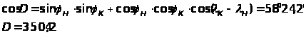 D2=Δφ2+ Δλ2* cos.2φ Δφ=φ>с> -φ>ор> Δλ=λс -λ>ор> |