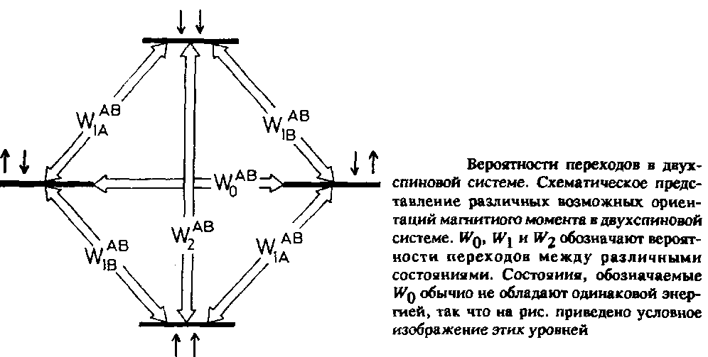 где W>0>, W\ и Wi – вероятности нуль-, одно- и двухквантовых переходов, а RaQ обозначает дополнительные каналы релаксации для спинов А и В.