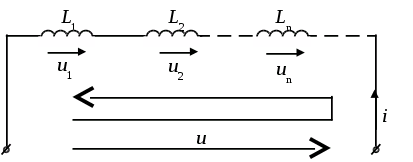 При последовательном соединении катушек индуктивности (рисунок 8) можно записать: