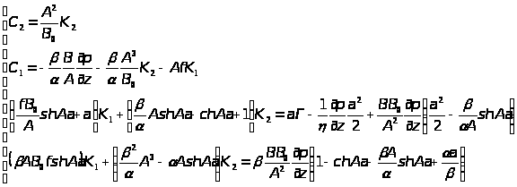 Общее решение будет идентично с решение первой задачи. Здесь мы будем иметь другие граничные условия. Поэтому система уравнений, описывающая стационарное течение в нашем случае имеет вид: