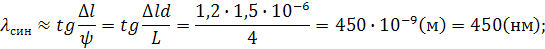 L = 4(м); λ>кр> = 700(нм); λ>зел> = 550(нм); λ>син> = 450 (нм);