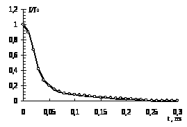 На рис.2 и рис.3 изображены кривые уменьшения интенсивности рассеянного света со временем после выключения электрического (рис.2) и магнитного (рис. 3) полей. Угол рассеяния в обоих случаях 90. По экспериментальным кривым спада рассчитаны коэффициенты вращательной броуновской диффузии для коллоидных частиц с помощью соотношения: