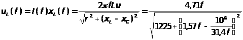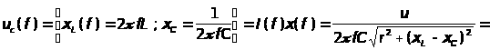 Рис.7. Зависимость напряжения на реактивных элементах от частоты сигнала