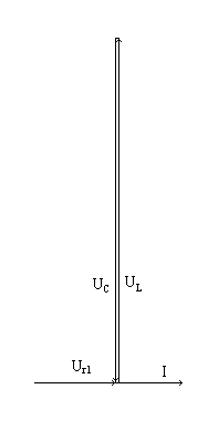 Векторная диаграмма тока и напряжений для частоты f<f0.