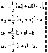 Амплитуды Аi, частоты свободных колебаний Wi и постоянные времени затухания Ti экспоненциальных и периодических составляющих зависят от параметров двигателя, значений скольжений ротора и характеризуются двумя коэффициентами затухания (a1, a2) и двумя базовыми частотами колебаний (w1, w2) [87]