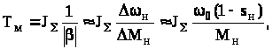 Это явление может быть объяснено тем, что в действительности, устойчивость системы определяется не абсолютным значением суммарного момента инерции ЭП, а влиянием его относительной величины на характер переходного процесса АД. Это влияние может быть выражено отношением электромеханической постоянной времени Тм к электромагнитной постоянной времени четвертой переходной составляющей электромагнитного момента - Т4 (3.10), (3.16 - 3.19). При линеаризации механической характеристики в области 0 < s < sн