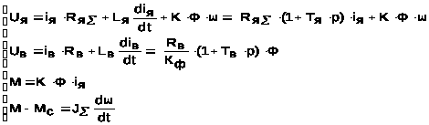 где U>я>, U>в>, – напряжение на обмотке якоря и возбуждения (ОВД),