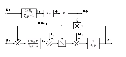 По приведенным уравнениям составим математическую модель двигателя постоянного тока независимого возбуждения ( рис. 2).