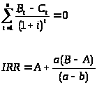IRR = 10% + ((19296,8 / (19296,8 + 11167,3)) * (15 – 10)% = 13,2%