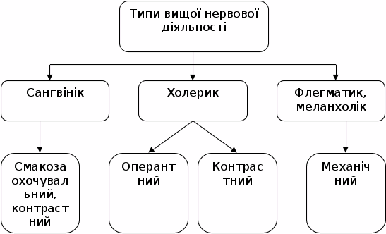 Умовно-рефлекторне поведінка формується в процесі навчання і може відбуватися у формах імпринтирування, утворення класичних умовних рефлексів, інструментальних умовних рефлексів, домінанти, звикання, наслідування й осязання. У формуванні придбаного поводження значну роль грають процеси аналізу і синтезу подразників пам'яті, механізми формування моделей сьогодення і майбутнього, конструювання програми поводження і контролю досягнутого результату, мотиваційні стани, а також апарат емоцій. Вивченням ВНД займається ряд наук: нейрофізіологія, фізіологія ВНД, етологія, зоопсихологія, генетика поводження і т.д. (Мазовер А. П., 1957).