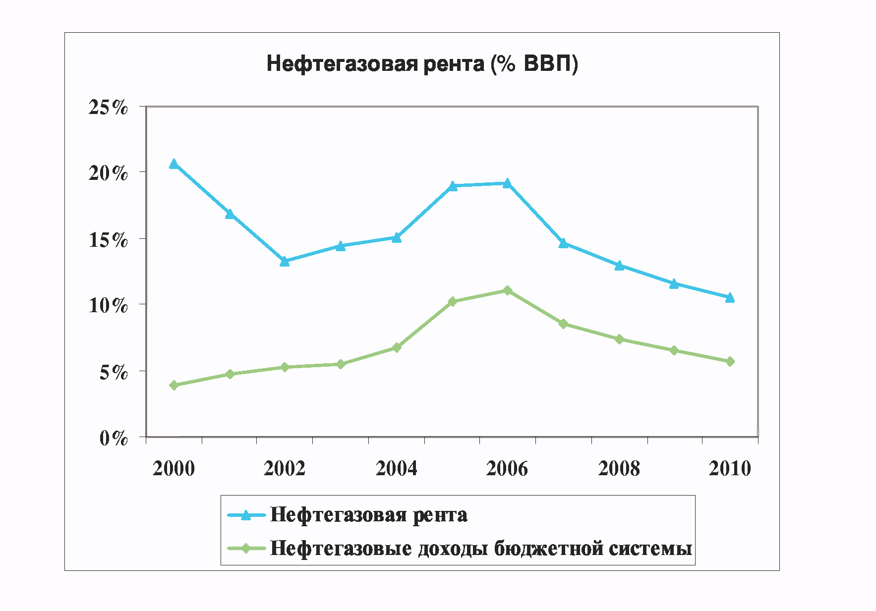 Малюнок 1. Нафтогазова рента Росії % ВВП