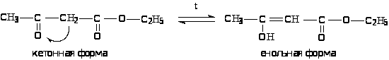 Кето-енольная таутомерия ацетоуксусного эфира.