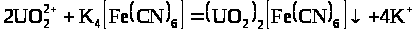 Для качественного определения урана и тория применяют методы химического, радиометрического, спектрального, а для урана еще и люминесцентного анализа. Химические методы основаны на различных реакциях взаимодействия урана и тория с неорганическими и органическими реагентами с образованием либо трудно-растворимых, либо окрашенных соединений. В аналитической практике для качественного обнаружения урана и тория предпочтение отдается методам с образованием окрашенных соединений. Так, например, ион уранила с неорганическим реагентом – ферроцианидом калия – образует осадок красно-бурого цвета: