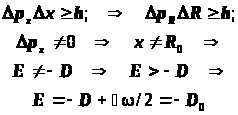 Вместе с тем основное состояние не может быть связано в точности с минимумом адиабатического потенциала, поскольку минимум на кривой соответствует фиксированному равновесному межъядерному расстоянию, что противоречило бы принципу неопределённости Гейзенберга. При статически фиксированной длине связи импульс ядер должен был бы быть совершенно неопределённым. Это противоречие устраняется, если истинный уровень энергии сдвинуть немного выше минимума адиабатического потенциала. (рис. )