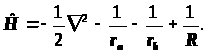 Составим молекулярный гамильтониан системы 3-х частиц. В атомных единицах он имеет вид: