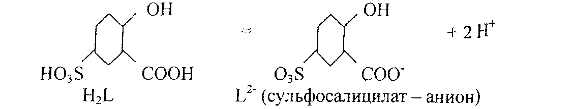 Салицилат – ион – анион одноосновной салициловой кислоты орто – НО-С>6>Н>4>-СООН. В обычных условиях в растворе протон от фенольной группы практически не отшепляется (только в сильных щелочных средах). Салициловая кислота очень плохо растворяется в воде (0,22% при 200С), поэтому при подкислении растворов ее солей (салицилатов) она выпадает из растворов в виде белого осадка. Салицилат – ионы в водных растворах бесцветны, подвергаются гидролизу способны к комплексообразованию. Известны салицилатные комплексы целого ряда металлов. Салициловая кислота образует два ряда солей, содержащих либо однозарядные анионы НО-С>6>Н>4>-СОО-, либо двузарядные анионы ОС>6>Н>4>СОО (SaL2-). Кристаллические салицилаты Со (III) Со (Н SaL)>2> 4Н>2>О, никеля (II) Ni(Н SaL)>2>4Н>2>О, марганца (II) Mn (HSaL)>2>-4H>2>O, цинка Zn (HSaL)>2>-2H>2>O, имеющие окраски соответствующего катиона и представляющие собой типичные комплексные соединения, растворяются в воде. Белый салицилат кадмия Cd (HSaL)>2>2H>2>O и бсаашше озшешш Со (HSaL)>2>, Ni (HSaL)>2>, Cd (HSaL)>2> - мало растворимы в холодной воде:безводный Zn (HSaL)>2>, NaHSaL и KHSaL растворяются в воде. Безводные салицилаты ZnSaL. CdSaL и MnSaL мало растворимы в воде.