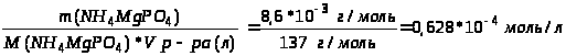 С (NH>4>MgPO>4>) = С (NH>4>+) = С (Mg2+) = С (PO>4>3-) = 6,2810-5 моль/л